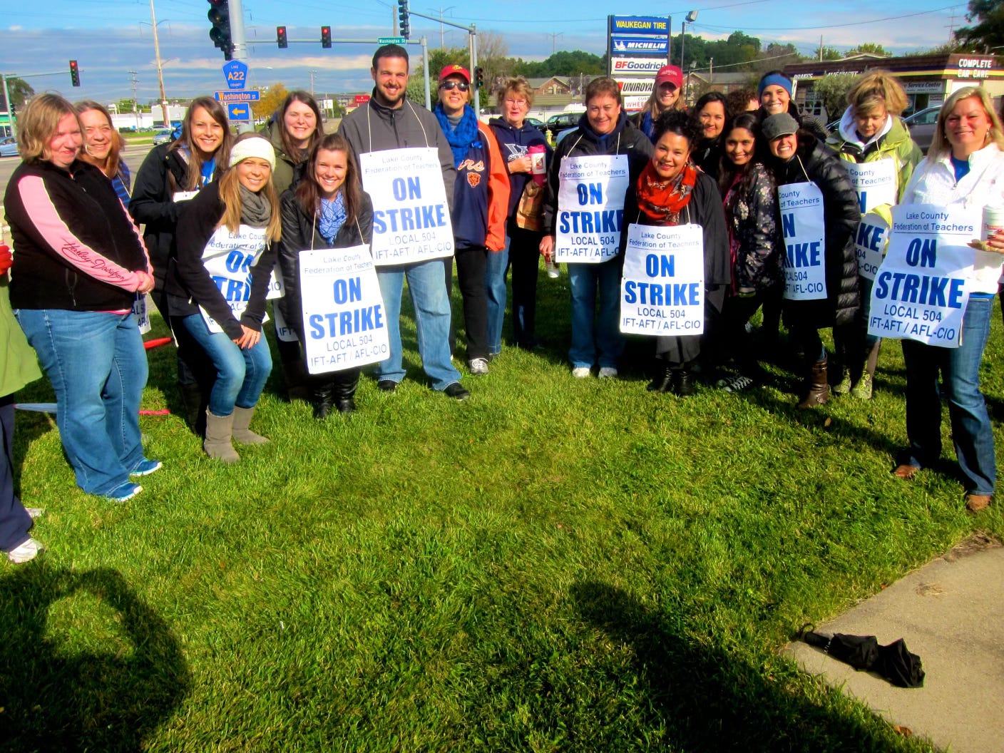 Walking a picket line supporting striking teachers in Waukegan in 2016.
